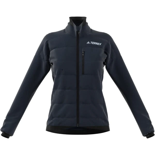 Skate or classic, maintain your pace on the trail in this adidas Terrex jacket. Strategically placed insulation provides warmth and breathability to vent heat as you warm up. Stretch without restriction through every stride. Move through light precipitation or layer it under your shell in wet weather. Stuff it in your pack when it’s not needed.