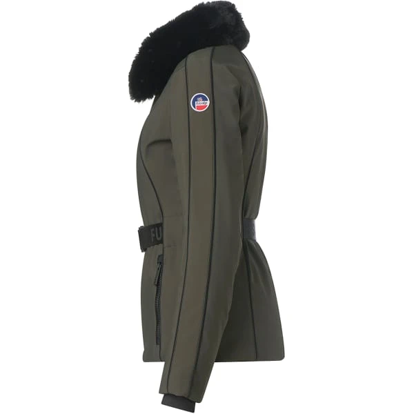 Its all softshell and stretch construction will keep you free of any constraints. The faux fur collar and decorative lastics on the shoulders and arms mark a sober and refined look. No doubt, with this coat, you will make jealous. It is still a true ski jacket with a snow skirt and cuff sleeves with thumbhole.