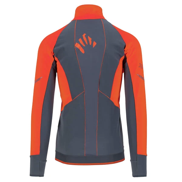 Made with a wind-resistant thermal fabric that provides warmth, protection when needed, and breathability when climbing with skins. A lighter-weight fabric is used on the back for increased breathability.
