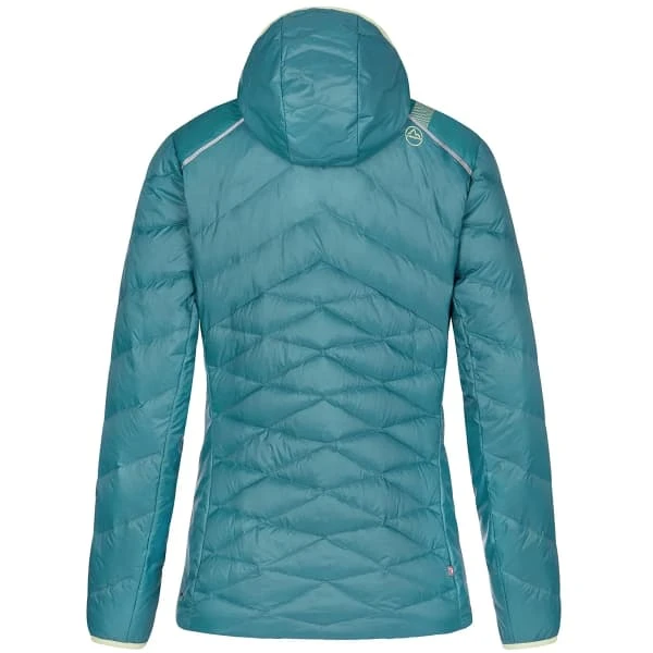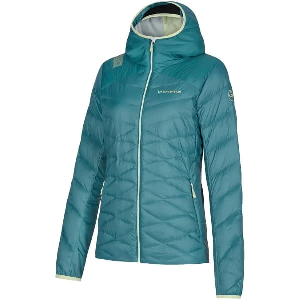 The women’s DEIMOS DOWN JKT W hooded jacket from LA SPORTIVA is a lightweight down jacket that perfectly combines thermal protection with modern sporty style.