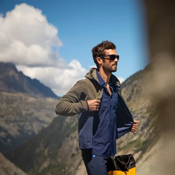 Indeed, there is a protective hood against the cold or the sun, a chest pocket and tightened cuffs.