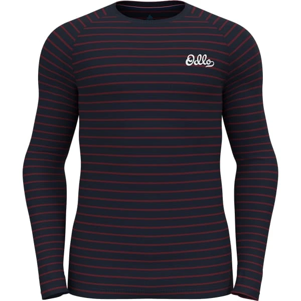 ODLO BL TOP CREW NECK LS ACTIVE WARM ORIGINALS ECO STRIPES DARK SAPPHIRE/SUNDRIED TOMATO 23